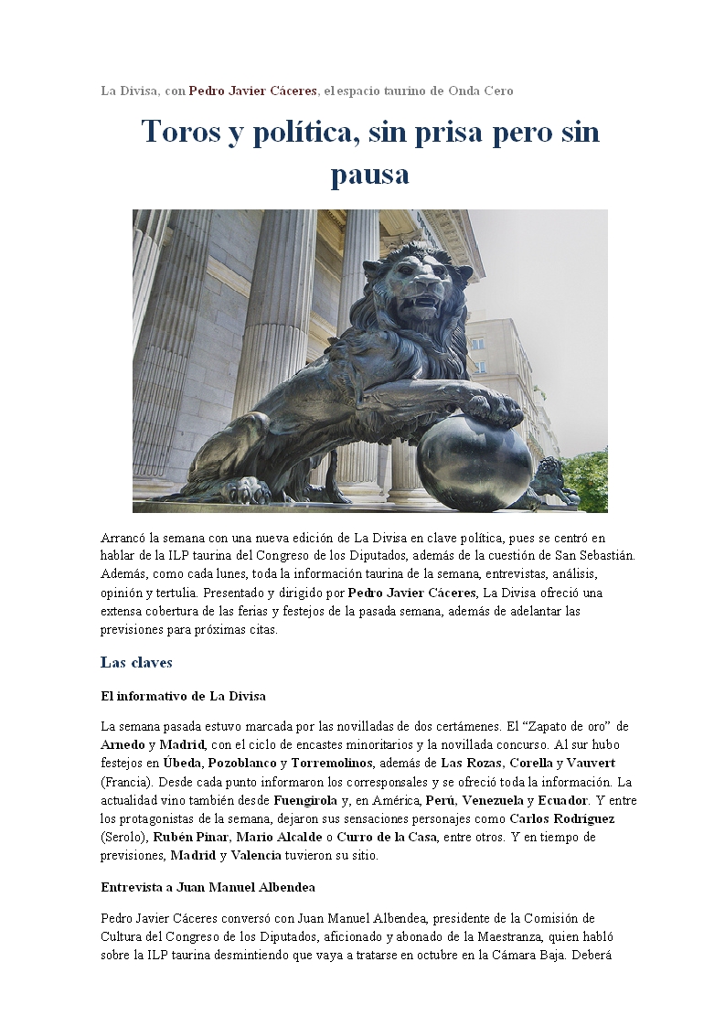 Toros y política, sin prisa pero sin pausa