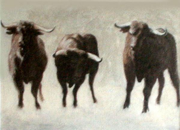Cada torito es diferente, pero parecidos en su ficticia acometida que parece querer detener al tiempo en el espacio.
