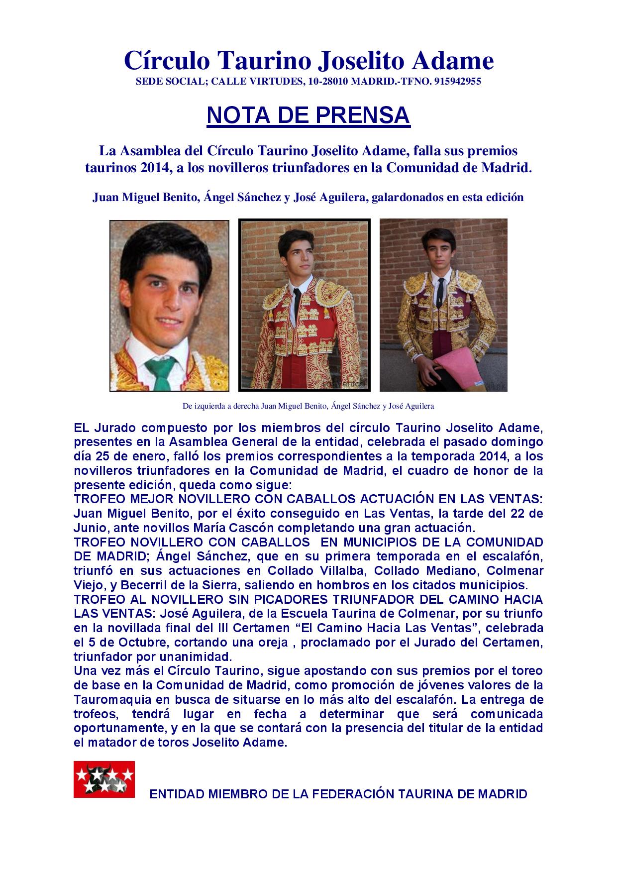 Triunfadores 2014 Círculo Taurino Joselito Adame