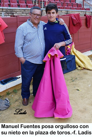 – Mi abuelo es Manolo Fuentes, (descendiente de Manuel Fuentes «Bocanegra», un matador de toros cordobés del siglo XIX) , un taurino que ha sido mozo de espadas de muchos toreros cordobeses. El ha fabricado monteras, ayudas y capotes y siempre ha estado en relación con este mundo. A mi desde muy chiquito me ha llevado a los toros y me ha contado interesantes historias taurinas. El me apuntó a la escuela y me trae a las clases. Con tres años hice mi primer paseíllo en Los Califas, y desde entonces no he dejado de hacerlo ni un año. He ido delante de las cuadrillas y después al lado de los toreros de la Becerrada cuando daban la vuelta al ruedo. Cada año que ha pasado he sentido más fuerte el deseo de ser torero. Y por fin me ha llegado la hora.