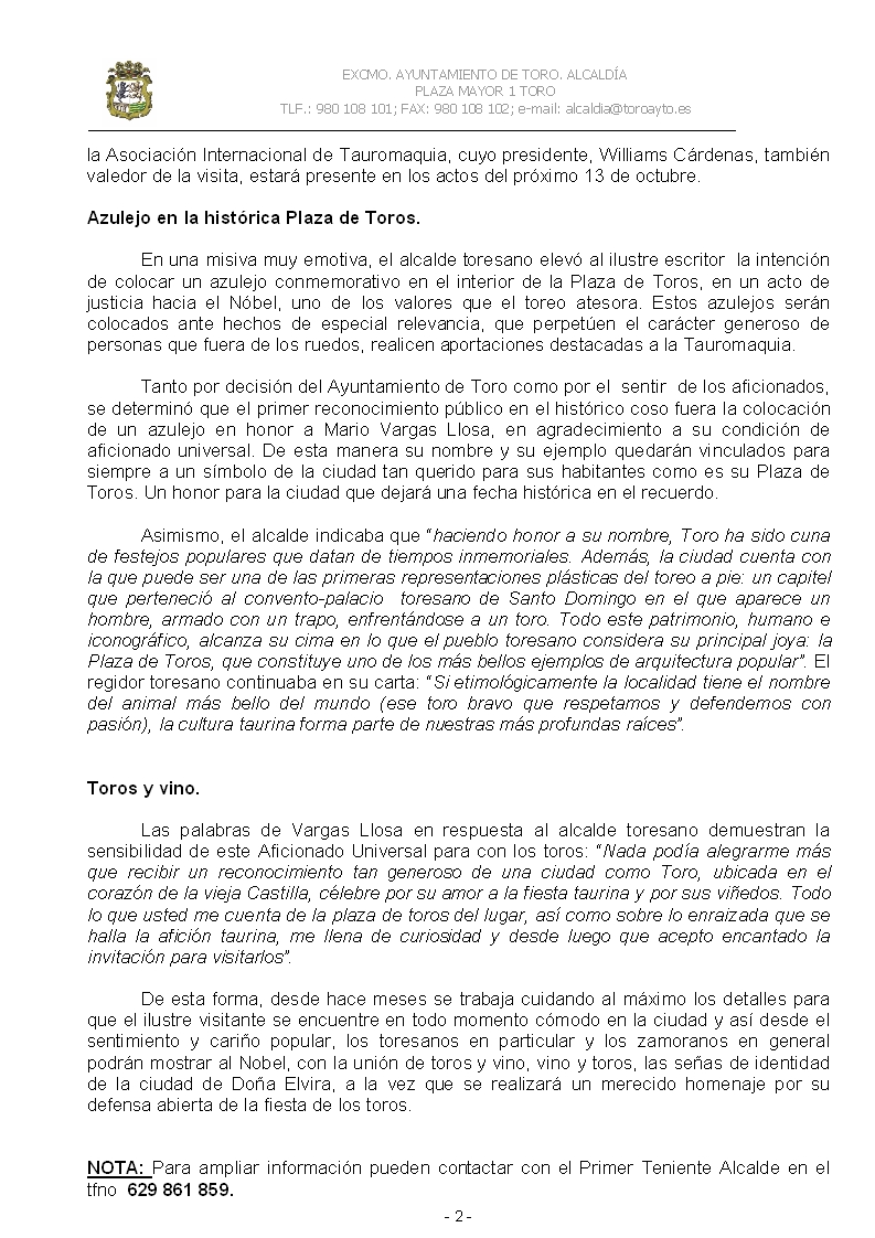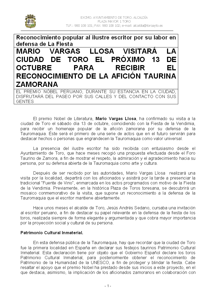 Vargas Llosa visita Toro