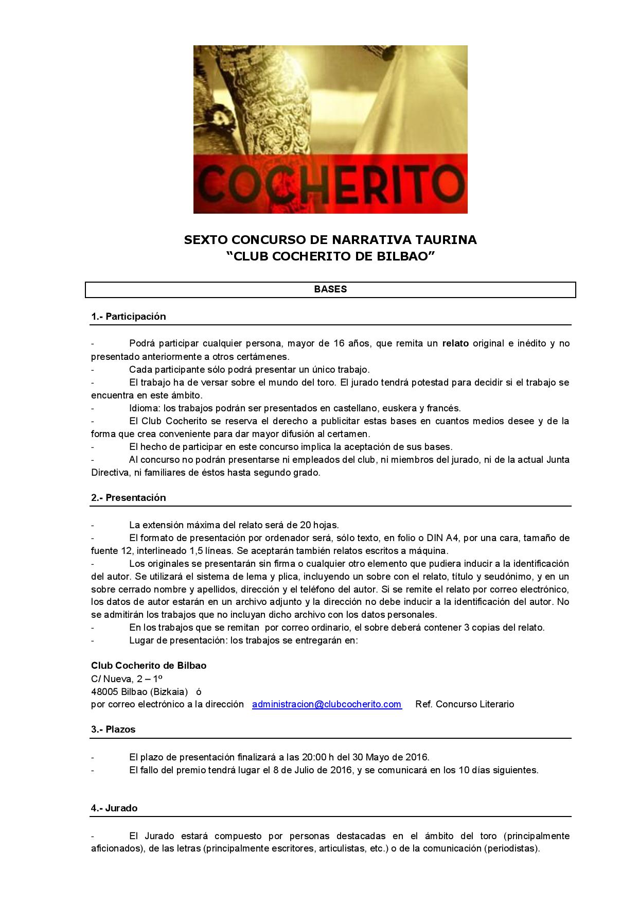 VI Premio Literario Club Taurino Cocherito de Bilbao