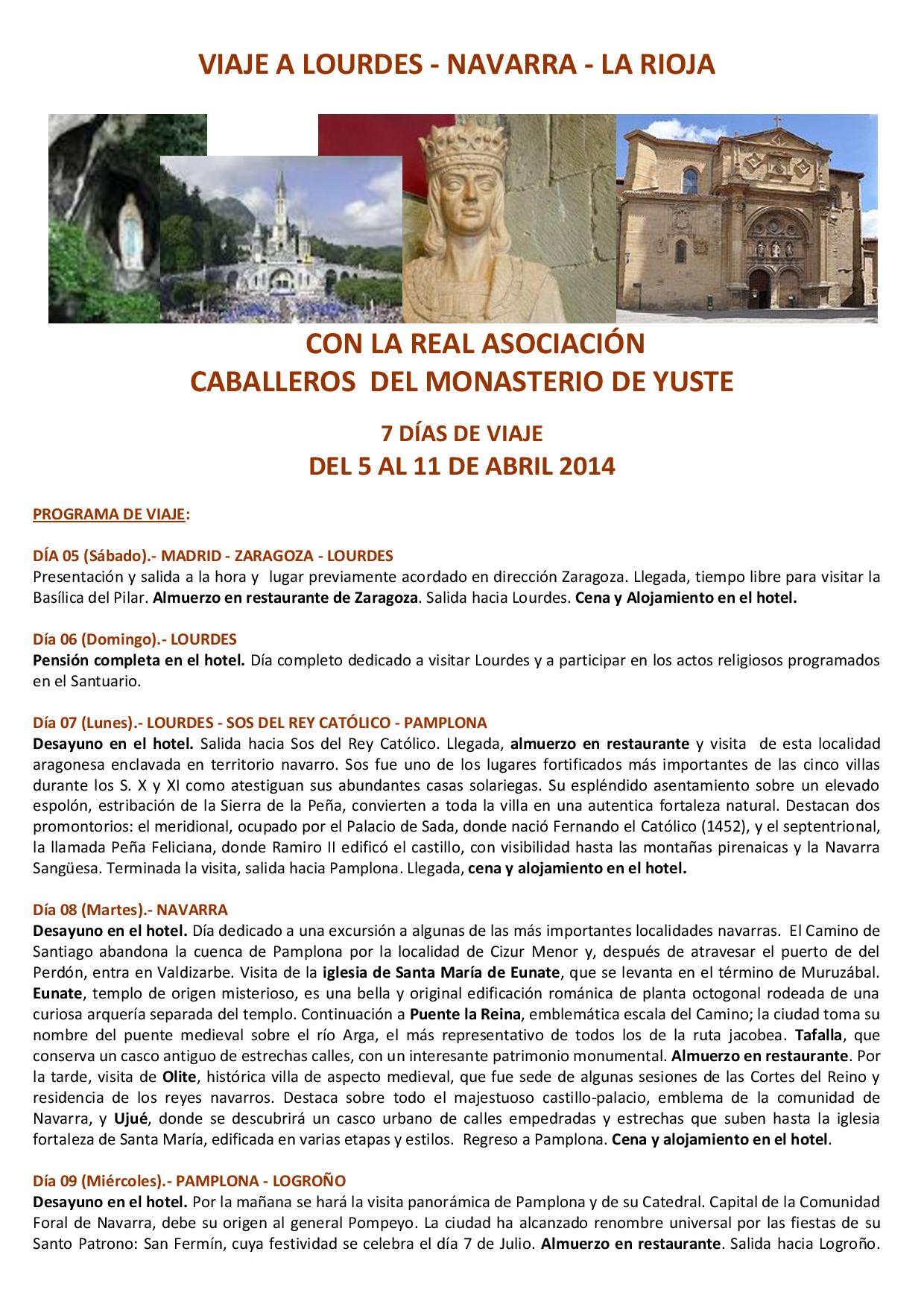 Viaje a Lourdes – Navarra – La Rioja con la Real Asociación Caballeros del Monasterio de Yuste