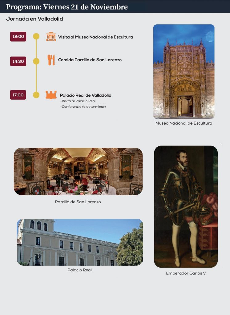La Real Asociación de Caballeros y Damas del Monasterio de Yuste, tiene previsto realizar un viaje cultural a Valladolid, el viernes dÃa 21 de noviembre de 2025.