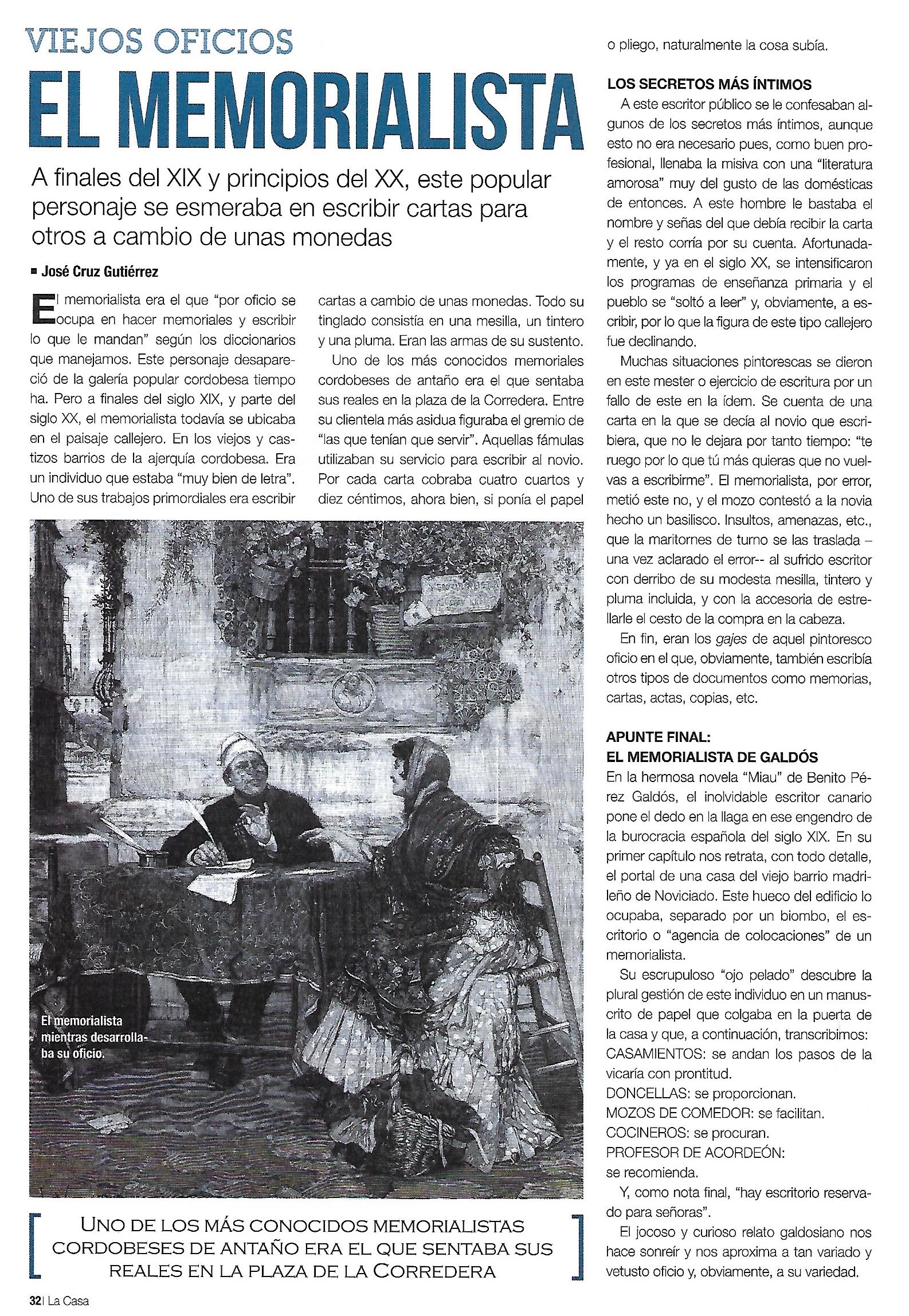 Viejos Oficios. El Memorialista