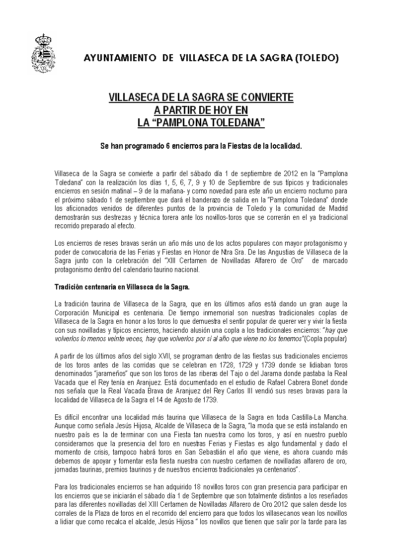Villaseca de la Sagra se convierte a partir de hoy en la Pamplona Toledana