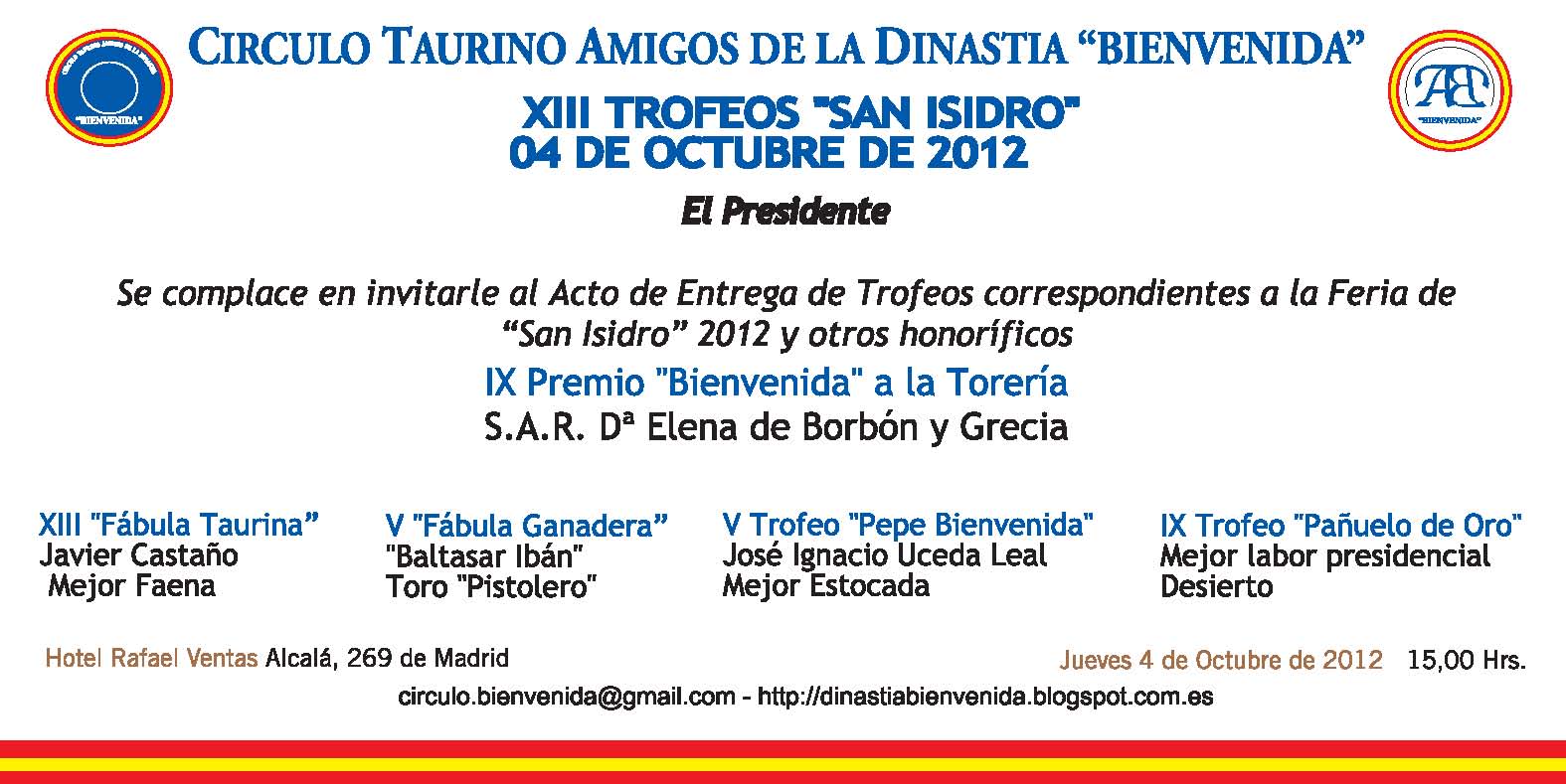 XII Trofeos San Isidro 2012 – Circulo Amigos de la Dinastía Bienvenida