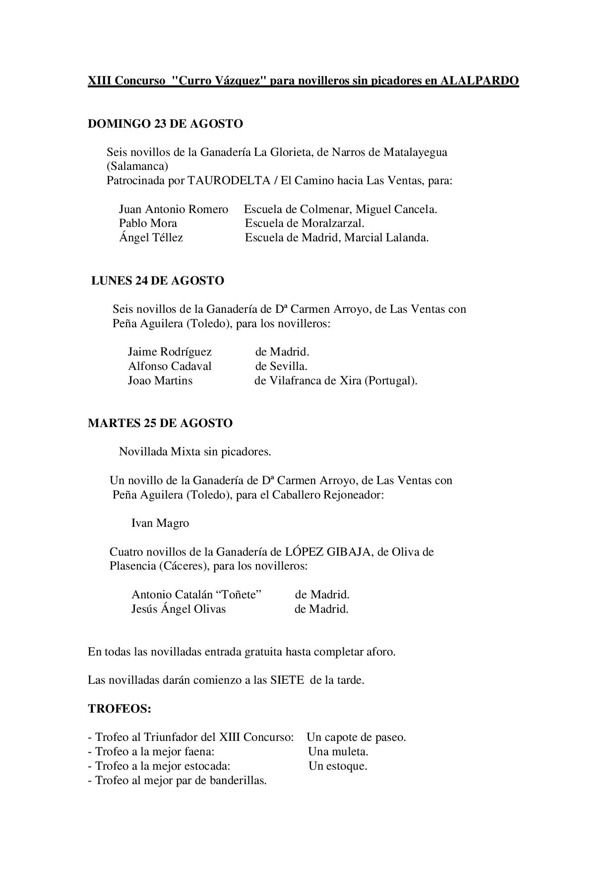 XIII Concurso `Curro Vázquez´ para novilleros sin picadores en Alalpardo