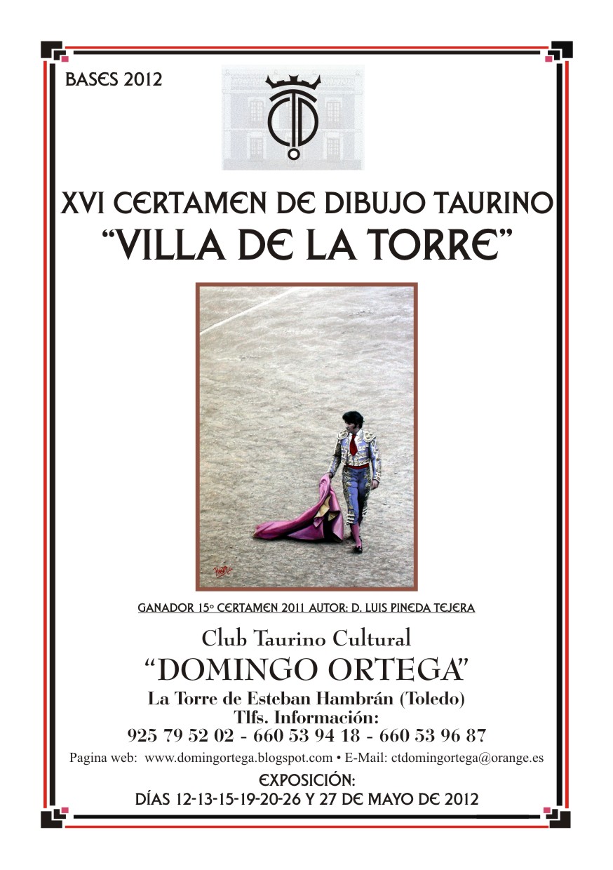 Los amigos de La Torre de Esteban Hambrán (Toledo) han comenzado el curso taurino publicando las bases del XVI Certamen de Dibujo Taurino «Villa de La Torre». Con 900 euros para el primer premio,400 para el segundo y mención honorífica para el tercero, a la cita están llamados los artistas que presenten un máximo de dos obras de dibujo originales de tamaño y técnica libres.