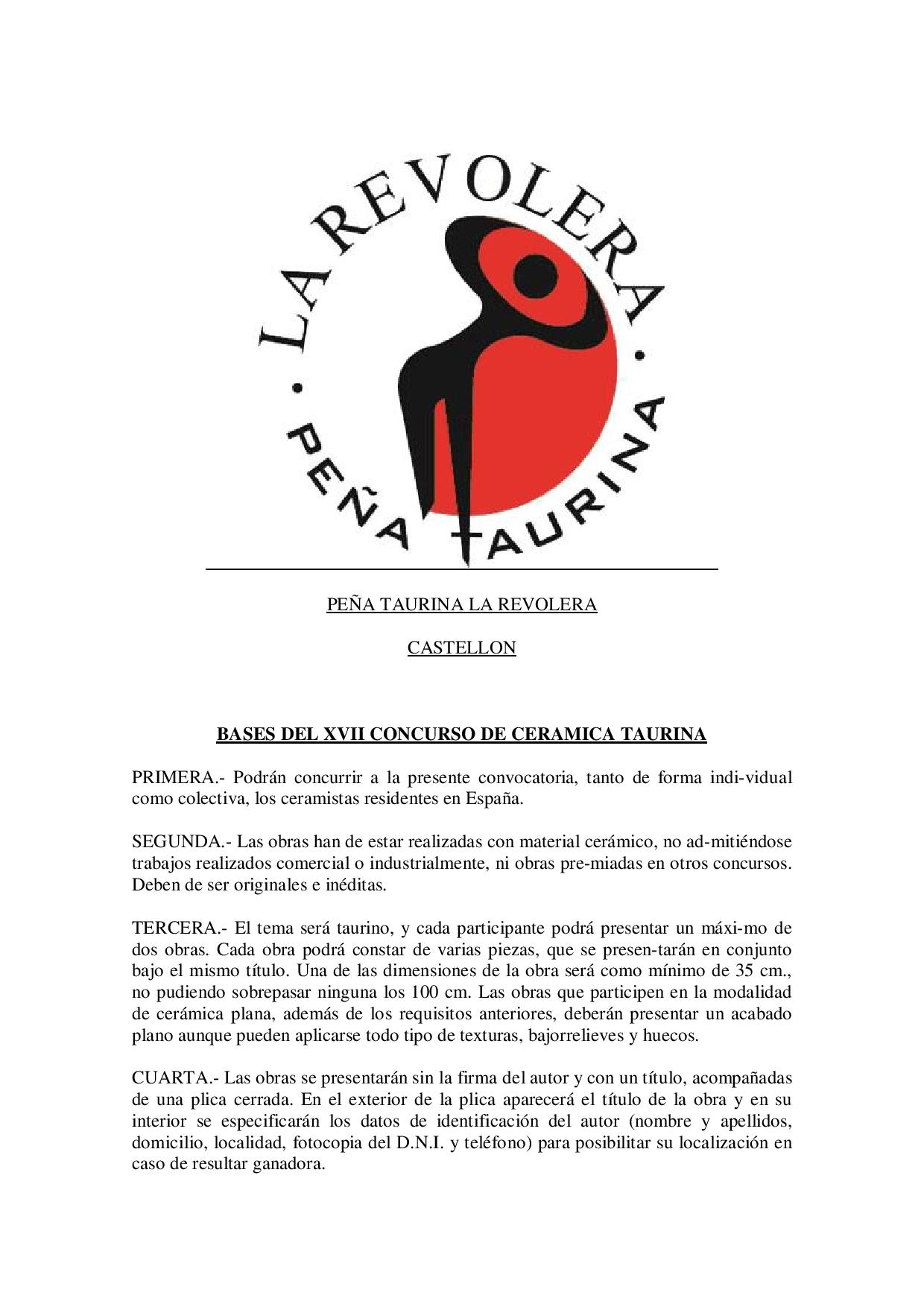 XVII Concurso de cerámica Taurina Peña Taurina `La Revolera´