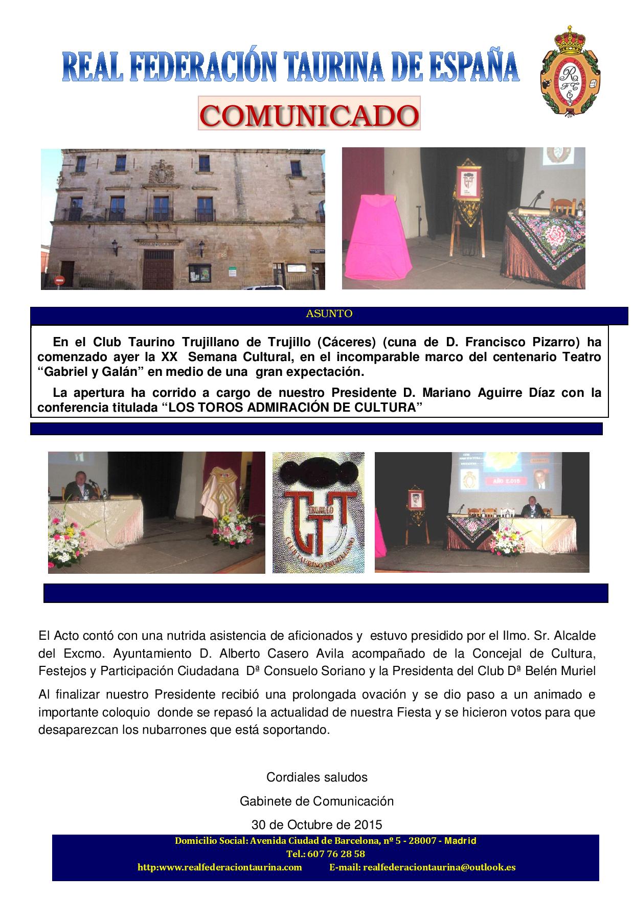 XX Ciclo Cultural Taurino Club Taurino Trujillano