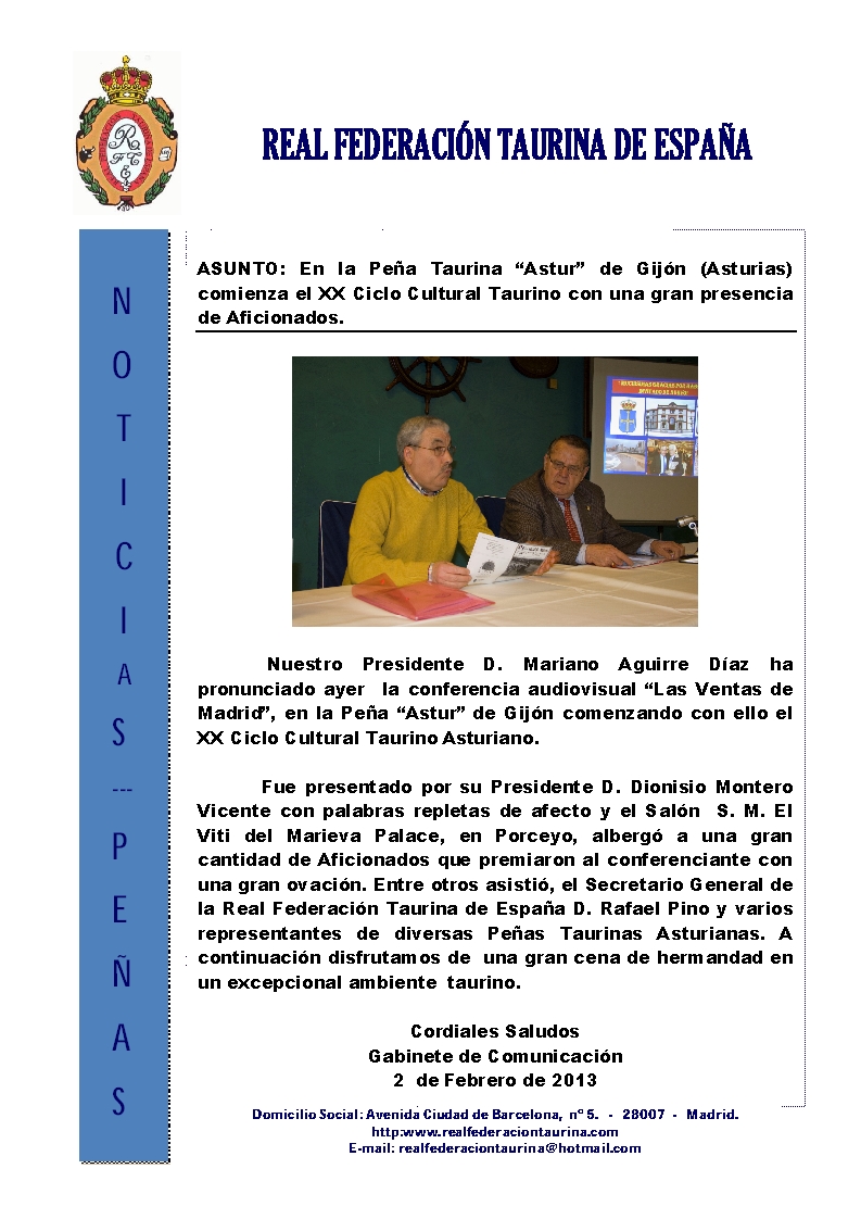 XX Ciclo Cultural Taurino en Peña Taurina Astur de Gijón