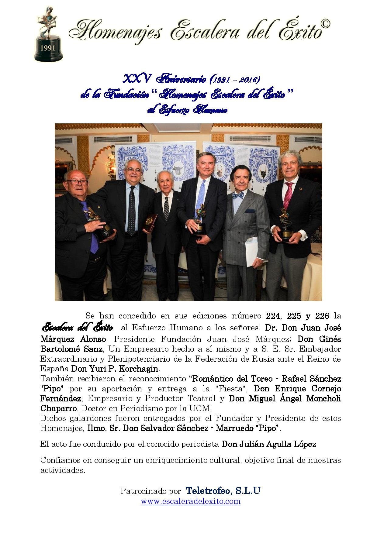 XXV Aniversario (1991 2016) de la Fundación `Homenajes Escalera del Éxito ´ al Esfuerzo Humano y `Un Romántico del Toreo – Rafael Sánchez `Pipo´
