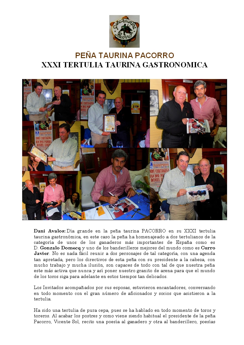 XXXI Tertulia Taurina Gastronomica Peña Taurina Pacorro