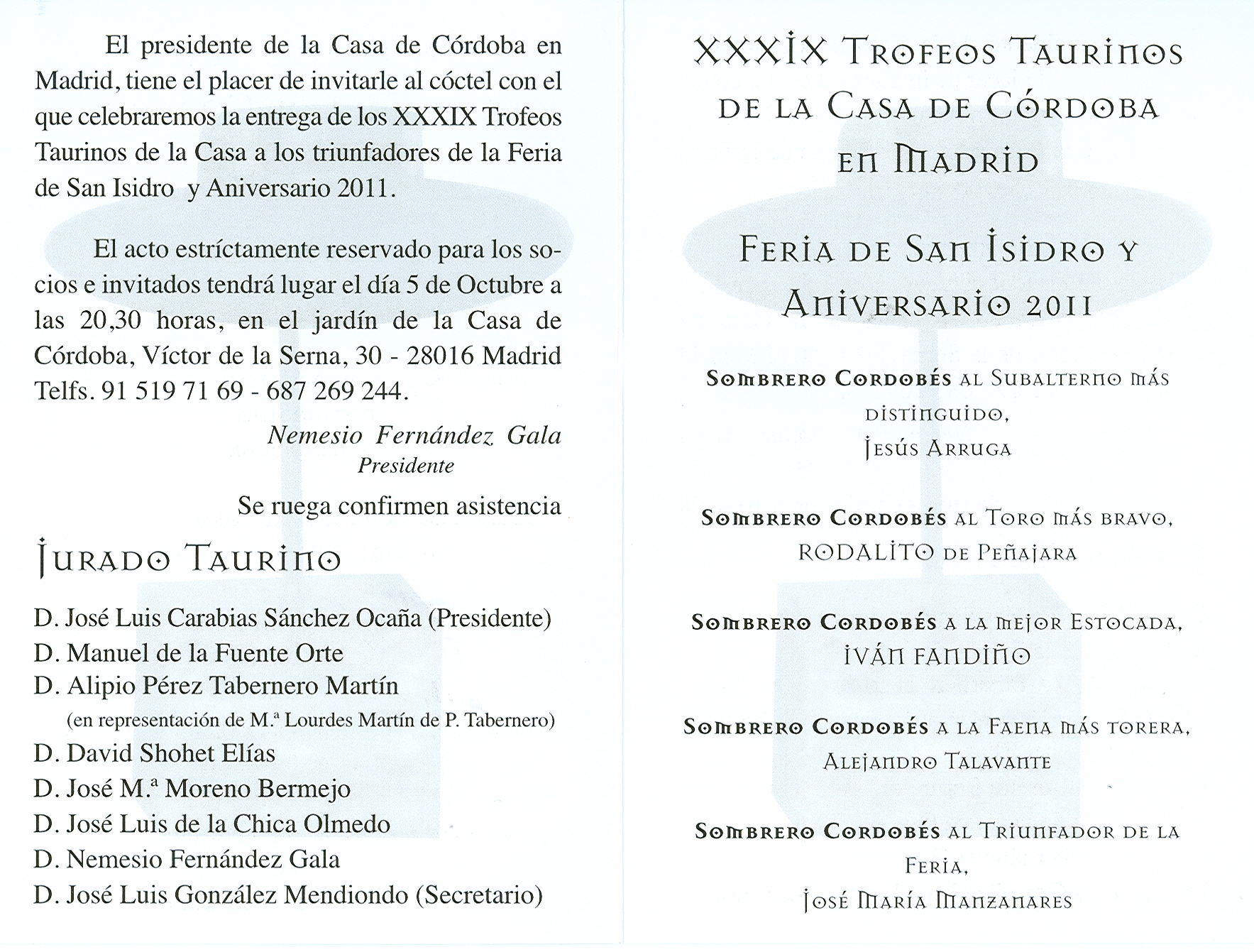 XXXIX Trofeos Taurinos de la Casa de Córdoba en Madrid