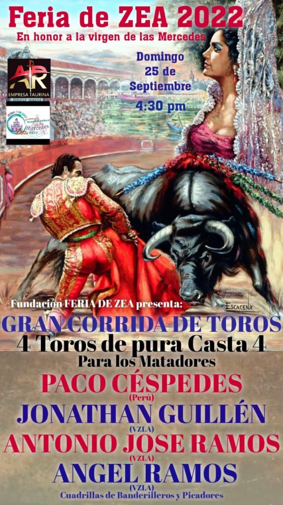 En ese orden de ideas, la Fundación Feria de Zea ha trabajado con ahínco para darle a su pueblo un festejo taurino de postín y no han escatimado para lograr una alianza importante con la empresa taurina «Antonio Ramos» e instalar en la adyacencias de este pueblo andino la plaza portátil «Martín Ramos» para ver hacer el paseíllo a los diestros Francisco «Paco» Céspedes del Perú y los Venezolanos Jonathan Guillén, Antonio José Ramos y Ángel Ramos, este último diestro triunfador de la Feria de La Grita en agosto pasado.