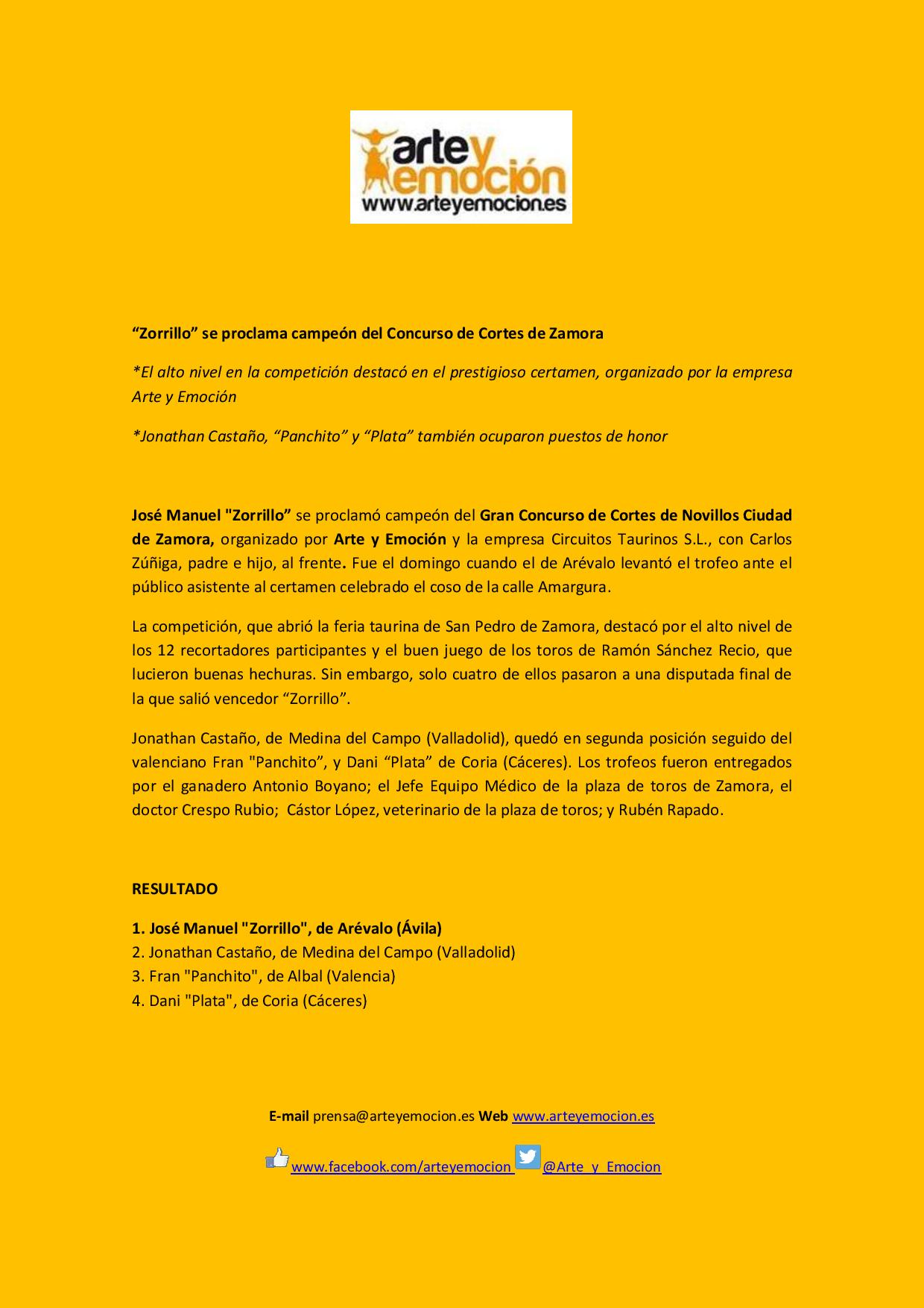 `Zorrillo´ se proclama campeón del Concurso de Cortes de Zamora