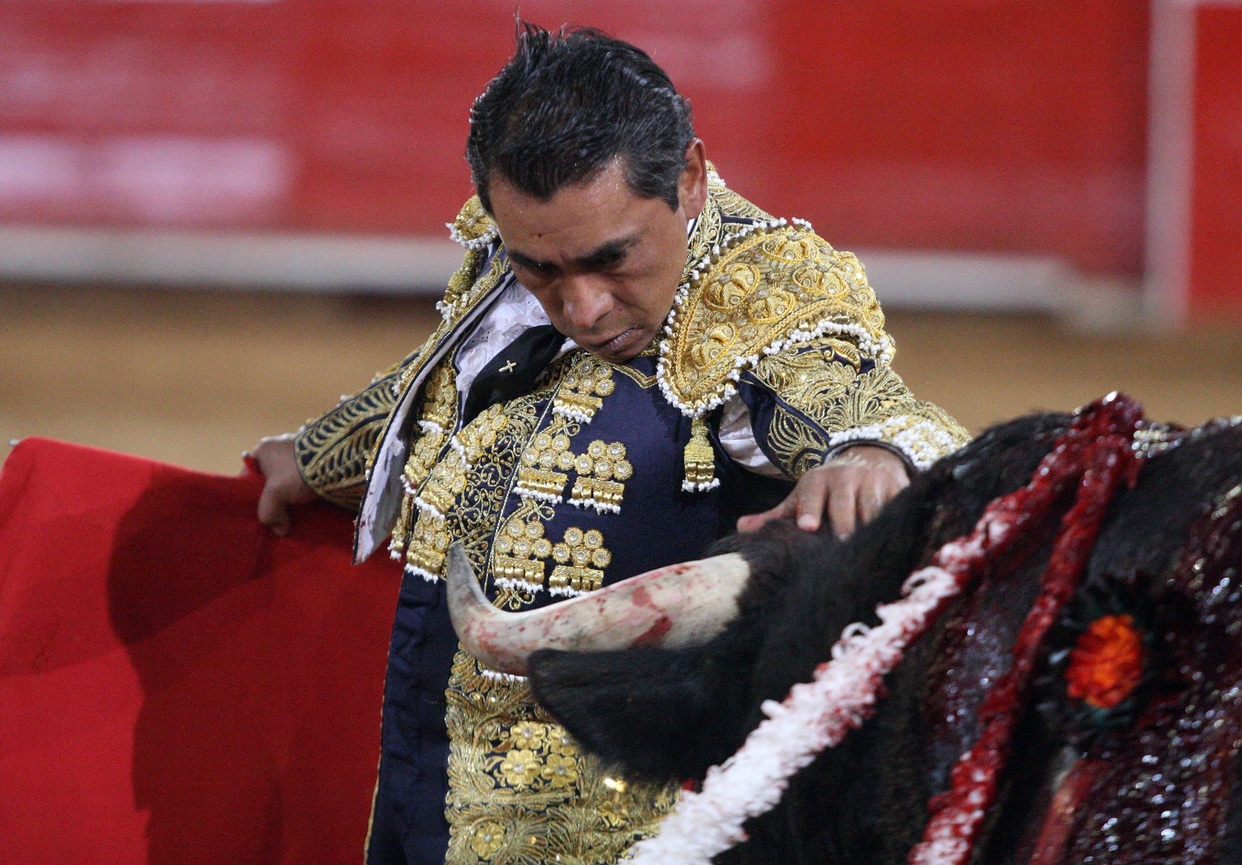 Con el sexto Chefo, número 647, cárdeno oscuro bragado meano y cornidelantero con 503 kilos, poco con el percal y con la pañosa una faena con muletazos a las embestidas descompuestas y peligrosas del burel. Mal con la toledana, media estocada y cuatro descabellos para escuchar sepulcral silencio y pitos al toro en el arrastre.